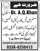 Latest Mahtab Khurshid Memorial School Education Posts Karachi 2025