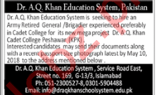 Dr AQ Khan Education System Retired Genreal Brigadier Jobs