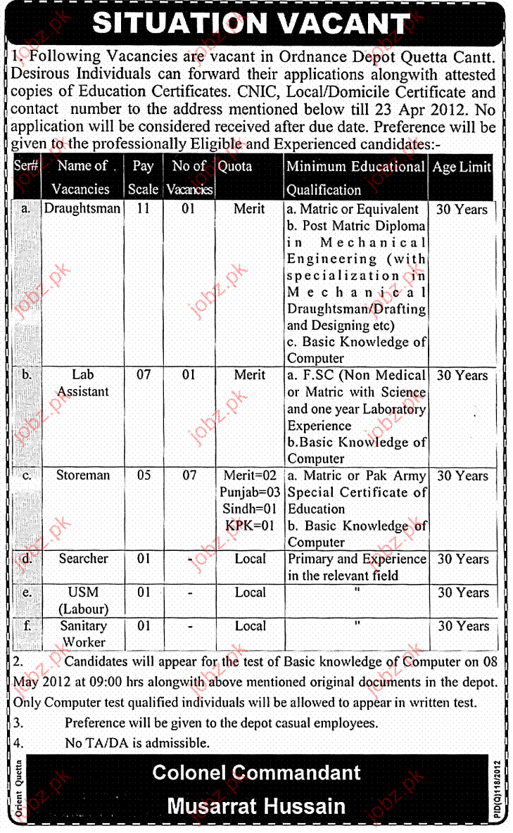 Apply as per details in job advertisement. Login to view further details of how to apply via https://www.jobz.pk online.
