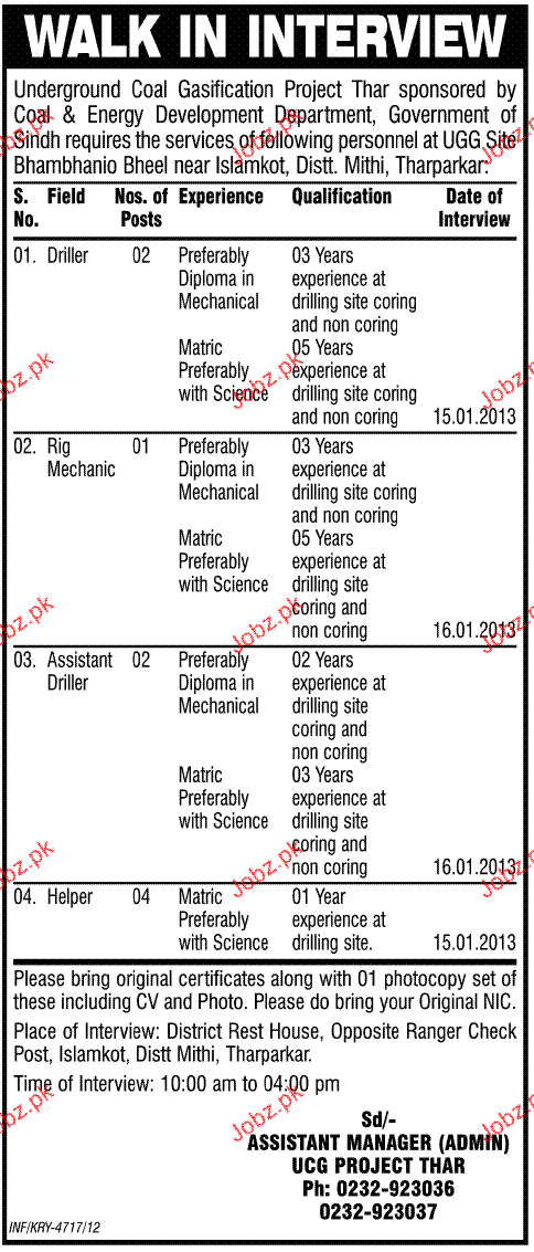 Driller, Rig Machanics, Assistant Driller and Helpers Wanted