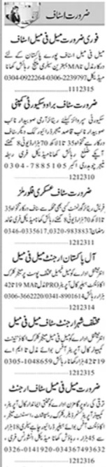 Private jobs advertisement dated about 12 January 2023 in daily Dunya Newspaper invites application for the vacant post of other staff, clerk, retired government staff, male female staff, helper, cook, office staff, computer call operator, office boy, management staff, security supervisor, retired subedar, pro, manager, driver, assistant manager, call operator, accountant, retired naib qasid, retired major, retired naib subedar, customer dealer and receptionist in Karachi, karachi Sindh Pakistan. Middle, Matric, Master, Bachelor and Intermediate etc. educational qualification will be preferred.