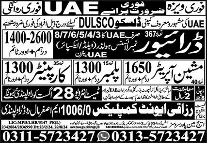 Edge Manpower Services invites applications for job positions advertised in daily Express dated 27 August 2024 for following vacancies in Abu Dhabi, abu dhabi UAE.