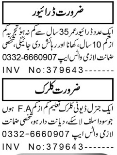 Private Company invites applications for job positions advertised in daily Aaj dated 28 December 2024 for following vacancies in Peshawar, peshawar Khyber Pakhtunkhwa KPK Pakistan.