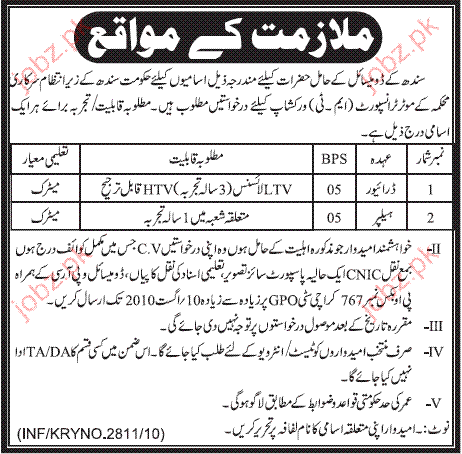 Apply as per details in job advertisement. Login to view further details of how to apply via https://www.jobz.pk online.