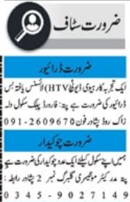 Private Company jobs advertisement dated about 31 March 2022 in daily Mashriq Newspaper invites application for the vacant post of driver, chowkidar, watchman and ltv driver in Peshawar, peshawar Khyber Pakhtunkhwa KPK Pakistan. Educational qualifications required Middle, Primary and Matric etc.