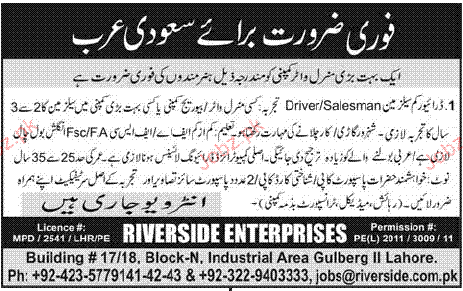 Driver Cum Salesman Job Opportunity