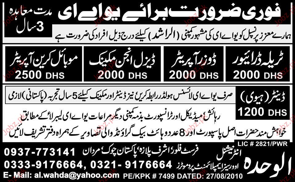 Driver, Dozer Operator, Diesel Engine Mechanic Vacancy