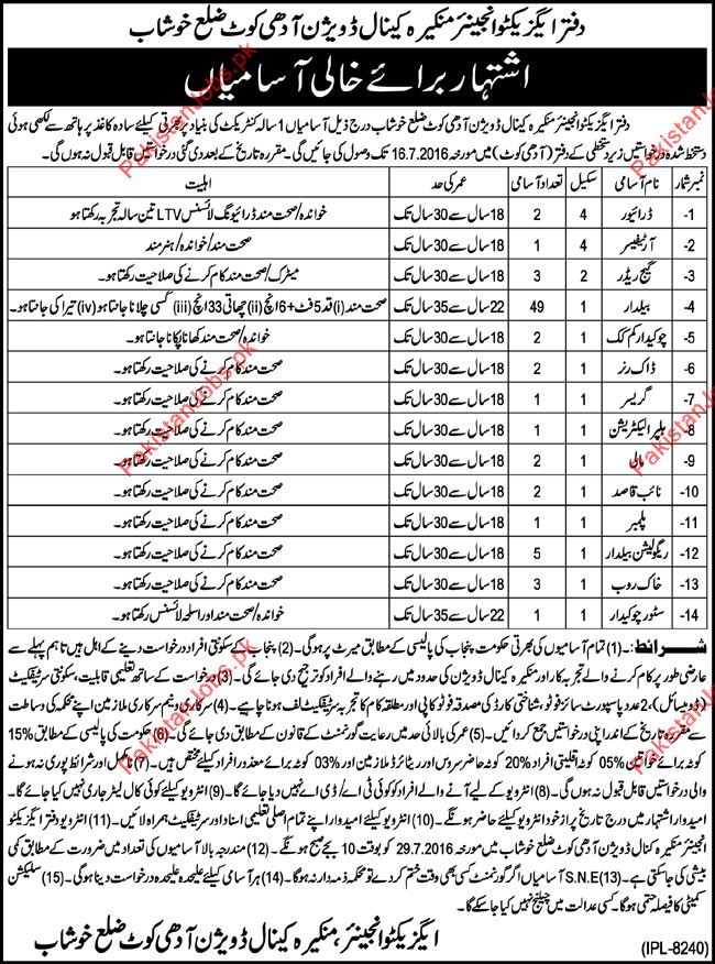 Driver, Gage Reader, Baildar, Chowkidar, Mali, Naib Qasid