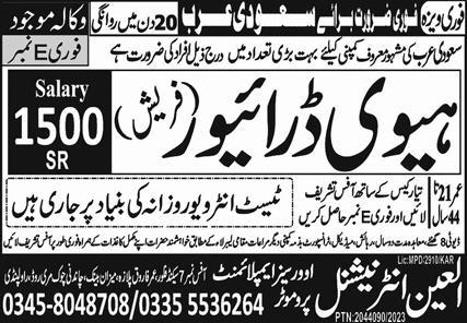 Al Ain International Overseas Employment Promoter is looking for candidates for following posts as per job advertisement published in daily Express Newspaper of October 25, 2023 for location Riyadh, makkah Saudi Arabia: