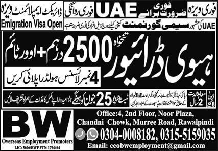 Latest BW Overseas Employment Promoters Driving Posts Sharjah 2025
