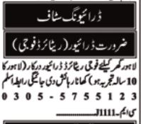 House Lahore, lahore Punjab Pakistan invites applications from eligible candidates for the post of ltv driver, house driver, driver and fauji driver as per advertisement of August 8, 2025 published in daily Nawaiwaqt Newspaper. Middle and Matric etc. educational qualification will be preferred.