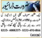 Private Company Lahore, lahore Punjab Pakistan invites applications from eligible candidates for the post of htv driver, driver and ltv driver as per advertisement of December 22, 2023 published in daily Nawaiwaqt Newspaper. Persons with Middle and Matric etc. education can apply.