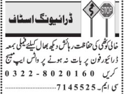 Driver & Husband Wife Jobs 2024 In Lahore
