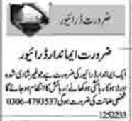 Private Company Lahore, lahore Punjab Pakistan invites applications from eligible candidates for the post of htv driver, ltv driver and driver as per advertisement of May 12, 2022 published in daily Dunya Newspaper. Educational qualifications required Middle, Primary, Matric and Intermediate etc.