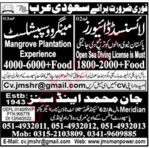 Vacant posts including mangrove specialsit, driver and licensed driver are announced in Jan Muhammad & Sons Saudi Arabia, saudi arabia Saudi Arabia as per 15 May 2022 advertisement in daily Jang Newspaper. Persons with Bachelor, Matric and Intermediate etc. education can apply.