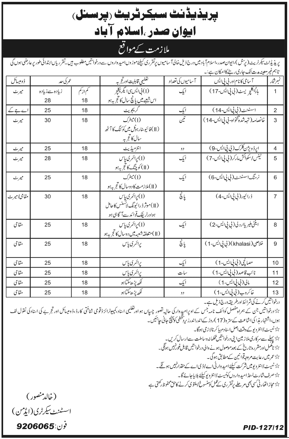 Latest Government Department Admin Clerical Posts Islamabad 2025