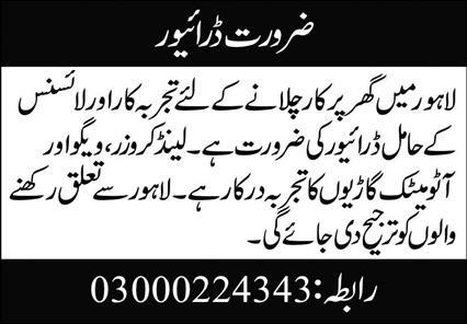 House jobs advertisement dated about 4 March 2022 in daily Express Newspaper invites application for the vacant post of driver in Lahore, lahore Punjab Pakistan. Matric and Middle etc. educational qualification will be preferred.