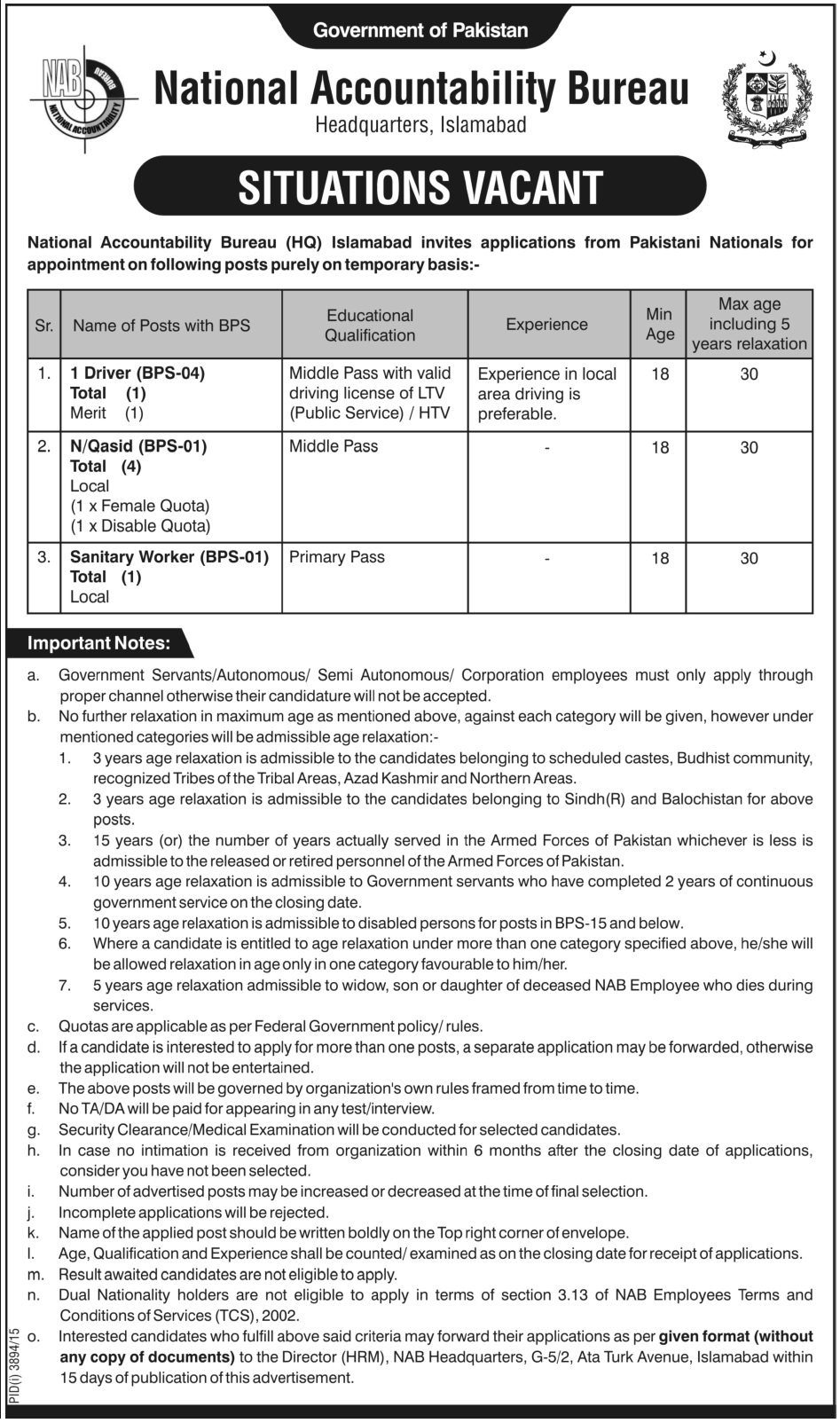 Apply as per details in job advertisement. Login to view further details of how to apply via https://www.jobz.pk online.
