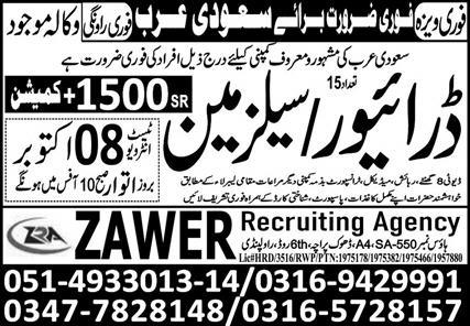 Latest Sales jobs and others Overseas jobs in Zawer Recruitment Agency closing date is around October 8, 2023, see exact from ad. Read complete ad online to know how to apply on latest Zawer Recruitment Agency job opportunities. Learn today skills like Driving, Sales Promotion and Sales to apply confidently on these Zawer Recruitment Agency jobs. Salary varies from 114000. Overtime might be allowed. During job accommodation, transport and medical facility is available.