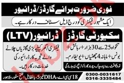 Driver & Security Guard Job In Lahore