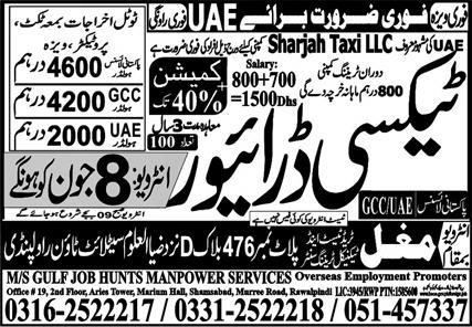 Mughal Trade Test & Technical Training Center invites applications for job positions advertised in daily Express dated 7 June 2023 for following vacancies in Abu Dhabi, sharjah UAE.