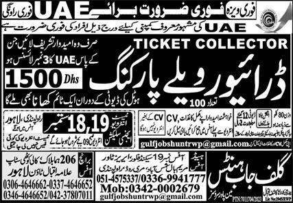 Vacant posts including driver valet parking, driver and ticket collector are announced in Gulf Job Hunts Manpower Services Sharjah, abu dhabi UAE as per 16 September 2023 advertisement in daily Express Newspaper. Educational qualifications required Intermediate and Matric etc.