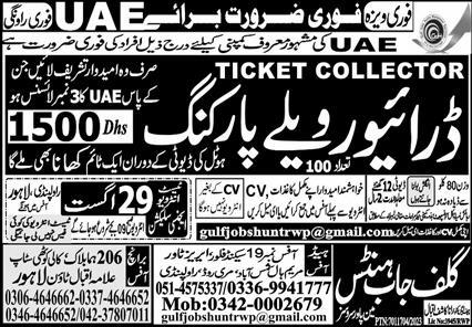 Gulf Job Hunts Manpower Services Abu Dhabi, abu dhabi UAE invites applications from eligible candidates for the post of driver vallet parking as per advertisement of August 27, 2023 published in daily Express Newspaper. Educational qualifications required Intermediate and Matric etc.
