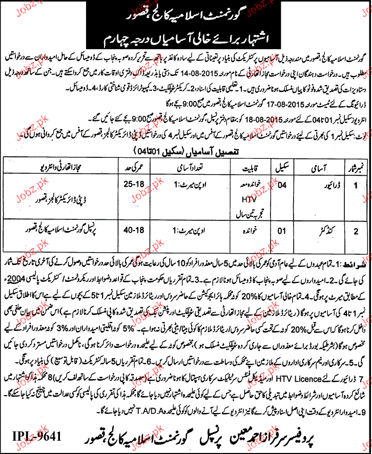 Apply as per details in job advertisement. Login to view further details of how to apply via https://www.jobz.pk online.
