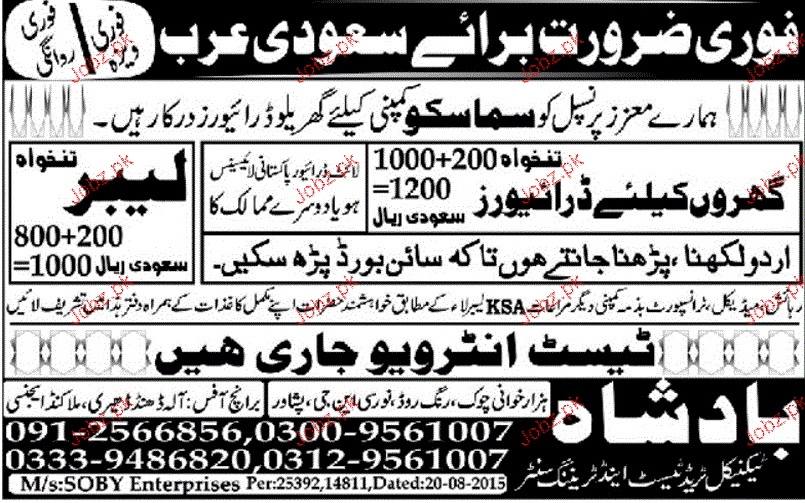 Drivers and Labors Job Opportunity
