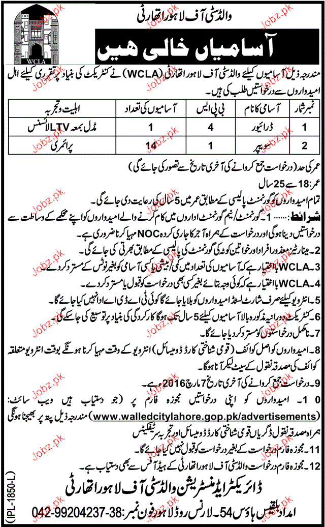 Latest Government Department Driving Posts Lahore 2025
