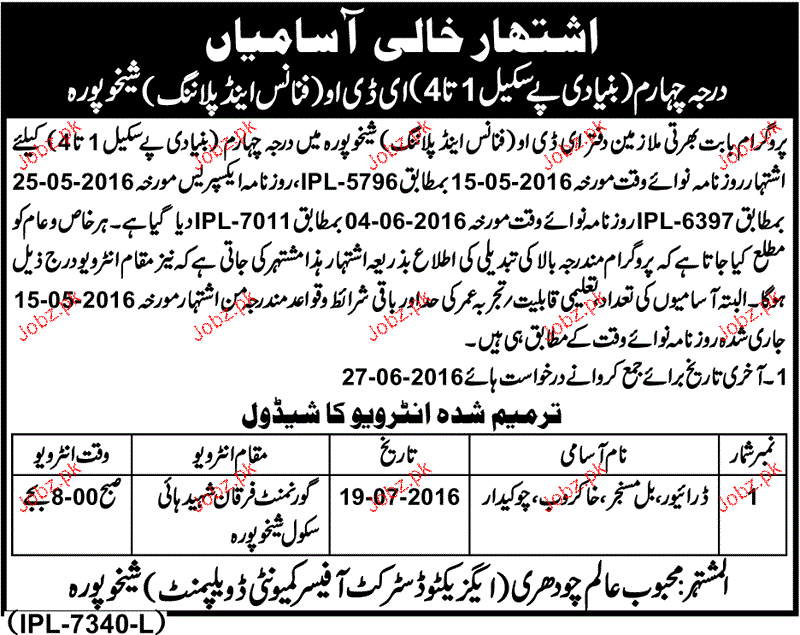 Drivers, Bill Messnagers, Chawkidars and Sweeper are required in Sheikhpura.