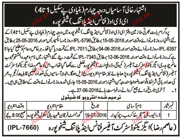 Drivers, Bill Messnagers, Chawkidars and Sweeper Wanted