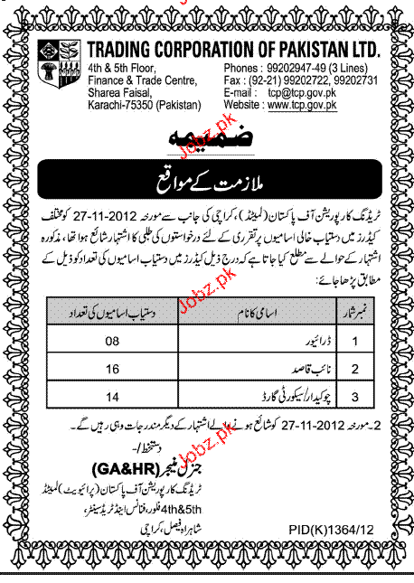 Drivers, Chawkidars And Naib Qasid Job Opportunity