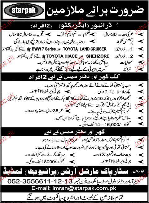 Latest Private Company Driving Posts Sialkot 2025