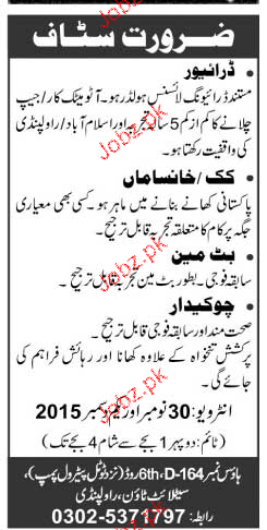 Drivers, Cook, Butman And Chawkidars Job Opportunity