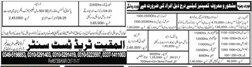 Apply as per details in job advertisement. Login to view further details of how to apply via https://www.jobz.pk online.