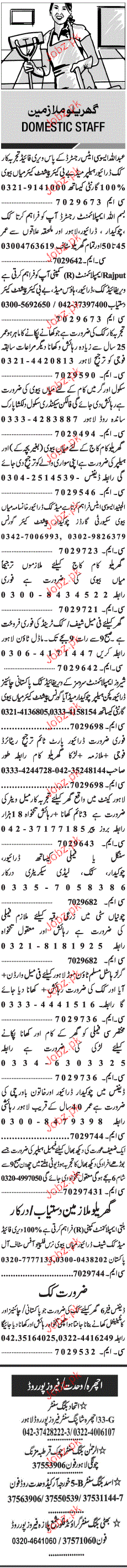 Drivers, House Miad, Chawkidars, Cook job Opportunity