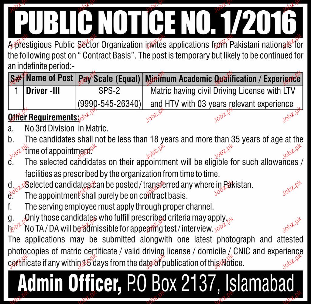 Apply as per details in job advertisement. Login to view further details of how to apply via https://www.jobz.pk online.