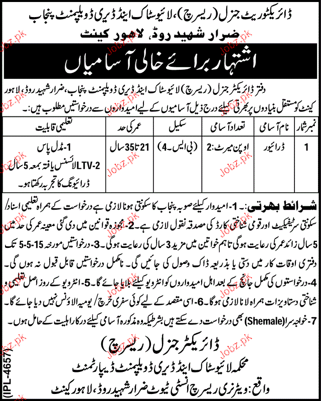 Apply as per details in job advertisement. Login to view further details of how to apply via https://www.jobz.pk online.