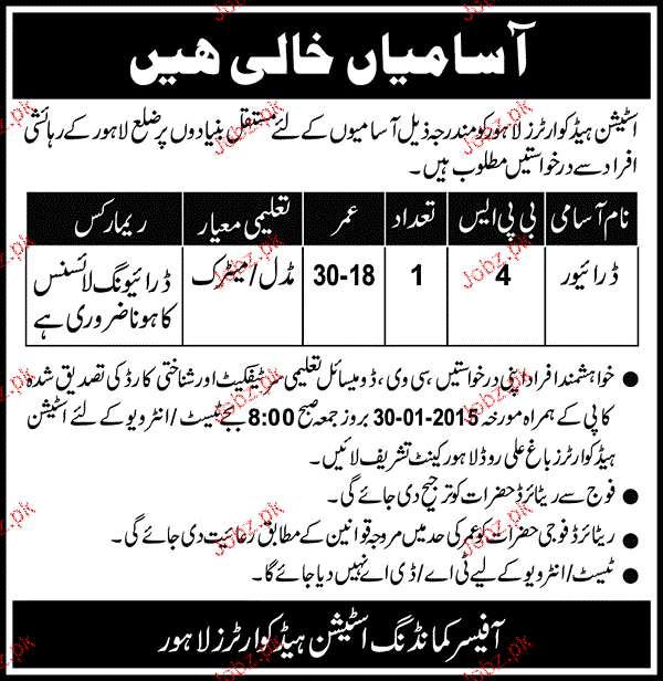 Apply as per details in job advertisement. Login to view further details of how to apply via https://www.jobz.pk online.