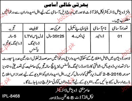 Latest Government Department Driving Posts Lahore 2025