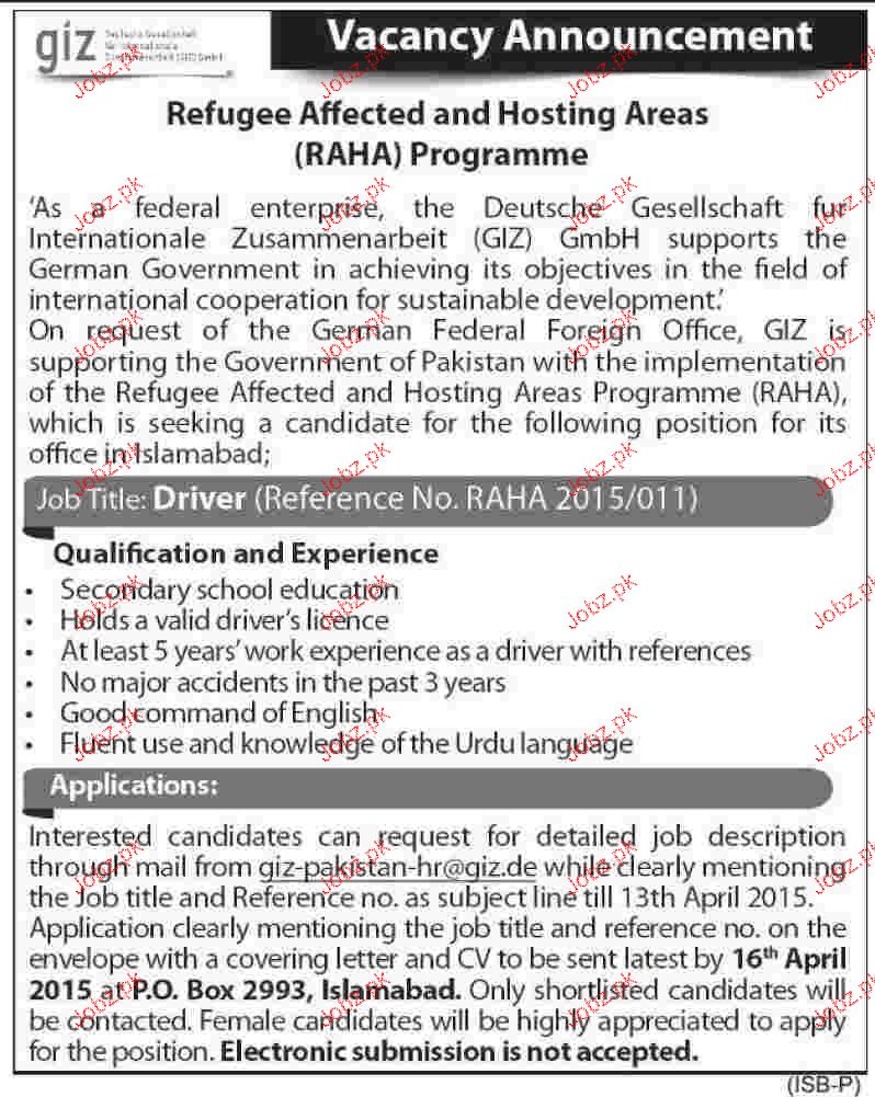 Apply as per details in job advertisement. Login to view further details of how to apply via https://www.jobz.pk online.