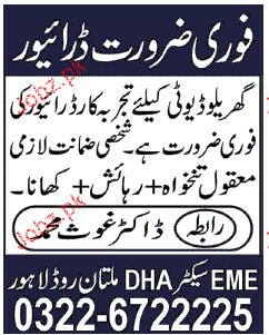 Latest Private Company Driving Posts Lahore 2025