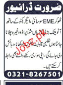 Drivers are required in Near Thokar EME Society Executive who can know to drive the big vehicle like parado etc having matric qualification. Food and Residence will be provided.