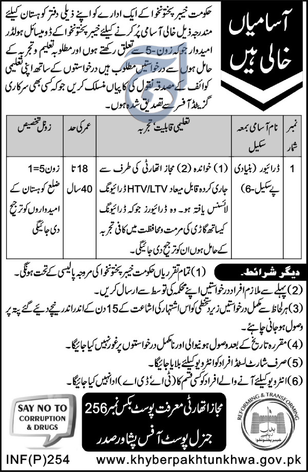 Latest Government of Khyber Pakhtunkhuwa Driving Posts Peshawar 2025