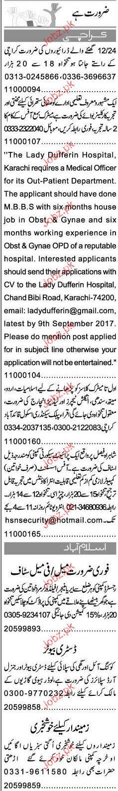 Drivers, Medical Officers, Ladies Incharge Job Opportunity