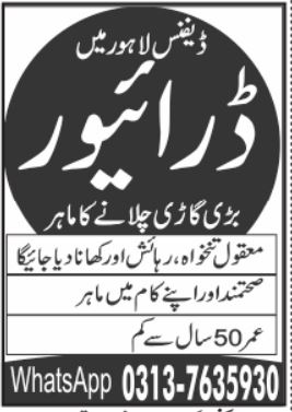 Latest Private Company Driving Posts Lahore 2025