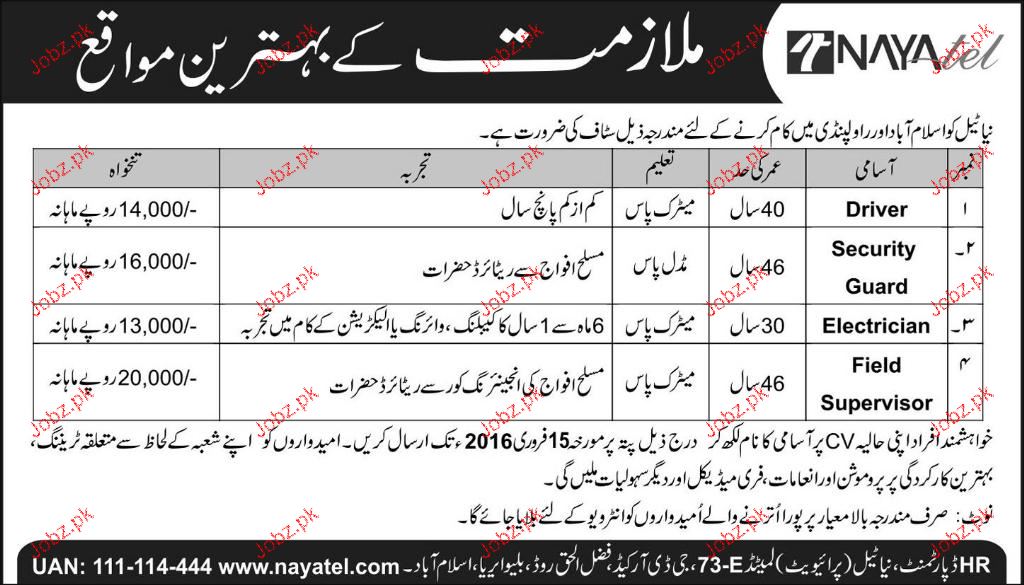 Drivers, Security Guards, Electricians Job In Naytel