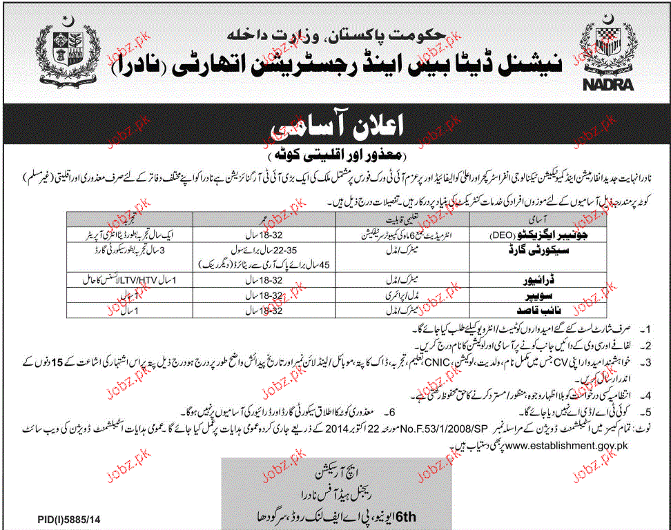 Apply as per details in job advertisement. Login to view further details of how to apply via https://www.jobz.pk online.