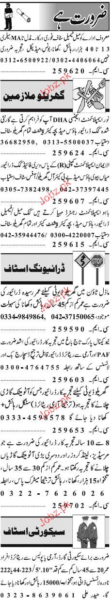 Drivers, Teachers, House Maid, Chawkidars Job Opportunity